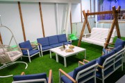 האחד מתחם חיצוני מקורה וממוזג מפנק במיוחד ובו: בריכה מחוממת, גקוזי ספא ל-6 אנשים, סאונה יבשה, פינת אוכל ל-12 סועדים, ערסלים, מדשאה, תאורה רומנטית צבעונית לשעות הערב, פינת ישיבה, נדנדה, ריהוט גן, מותר מנגל בשבת.