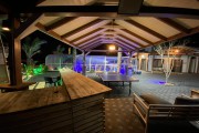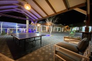 יש מיטת שיזוף בגינה, במתחם מטבח חיצוני משותף, חנייה בשפע, רהיטי גן מפנקים, יש שימשיות, שולחן פינג פונג, פינת ישיבה לנופשים שיש ממנה נוף. 2 פינות מנגל- אחת קבועה ואחת ניידת קמין נייד ופטריות חימום 2 מערכות שמע- רמקול מובנה ועוד אחד נייד מדשאה עם משחקים לילדים בגדול חצי דונם סלון חיצוני גדול ל20 איש פינה מקורה מסביב לבריכה ל20 איש ויותר. מטבח חיצוני ופינת אוכל