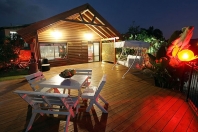 ברביקיו, יש תאורה, פינת ישיבה לנופשים שיש ממנה נוף, נדנדה לגינה, רהיטי גן מפנקים, יש שימשיות, עצים, צמחי נוי צבעוניים, ג`קוזי ספא פרטי ענק לכל יחידה, רחבת דק, שולחן וכסאות |