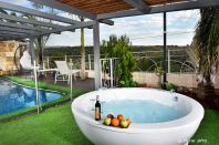 במתחם הסוויטות תמצאו גינה מטופחת ובה סאונה יבשה, ברכת שחייה מחוממת ומקורה, פינות ישיבה נוחות ותאורה לילית להנאה מושלמת גם בשעות החשכה.