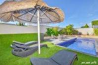 בוילה בריכה פרטית מחוממת מקורה, שולחן אוכל, מטבח מאובזר, סלון עם מסך LCD.