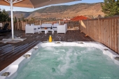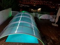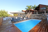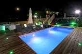 בריכה בצימר, דשא במתחם, סוככי שמש, יש תאורה, עצים. |
